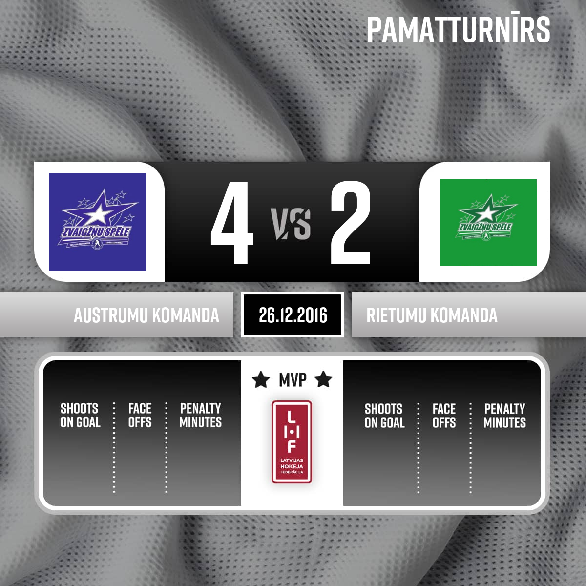- 11:19P2Austrumu komanda gūst vēl vienus vārtus un rezultāts kļūst 4:1