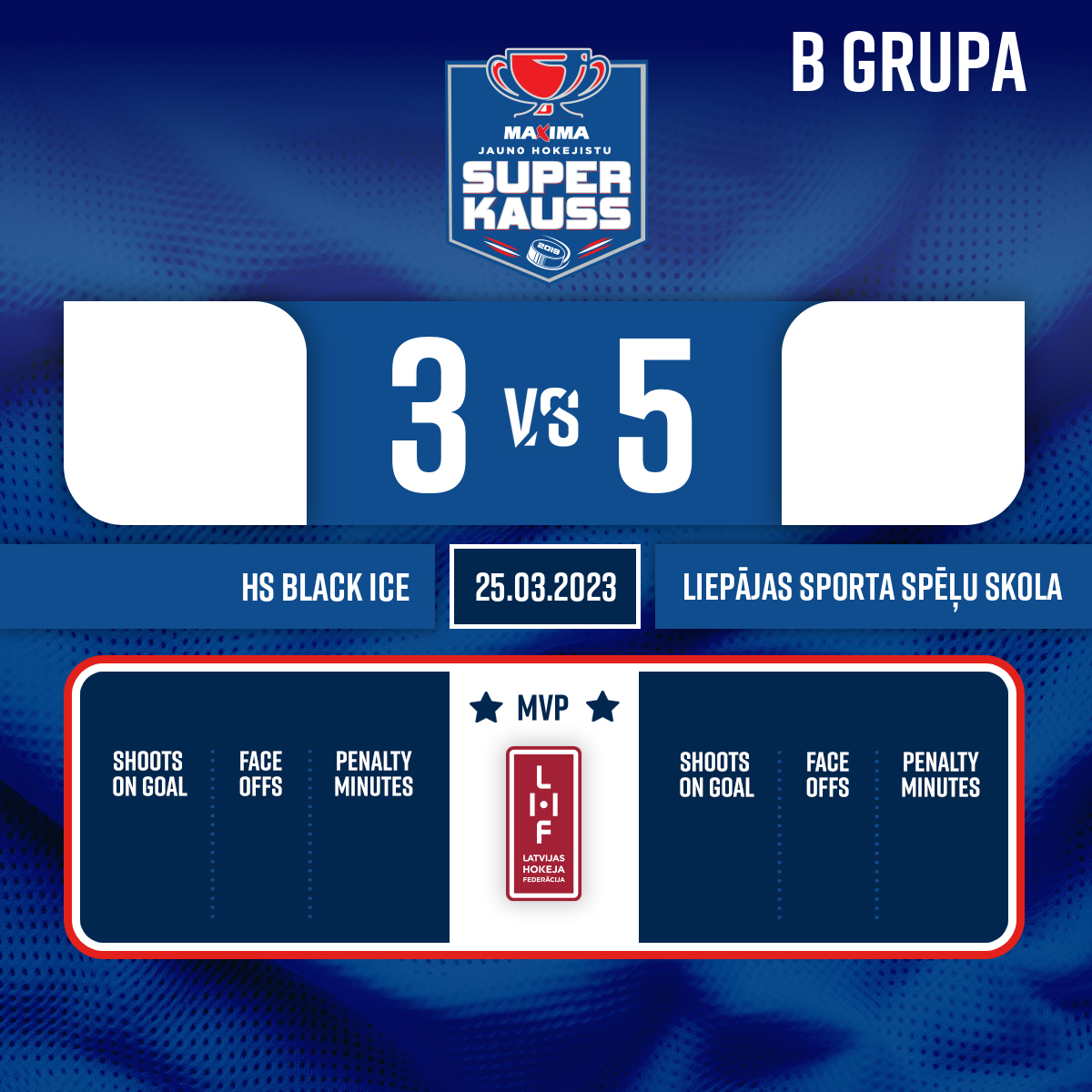 Shorthanded goal#26 Rolands MEDVEDSKISAssist: #15 Kristians Emīls NILLE - 30:11P3Penalty - 2 minutesCharging, #33 Domeniks PŪLĪTIS