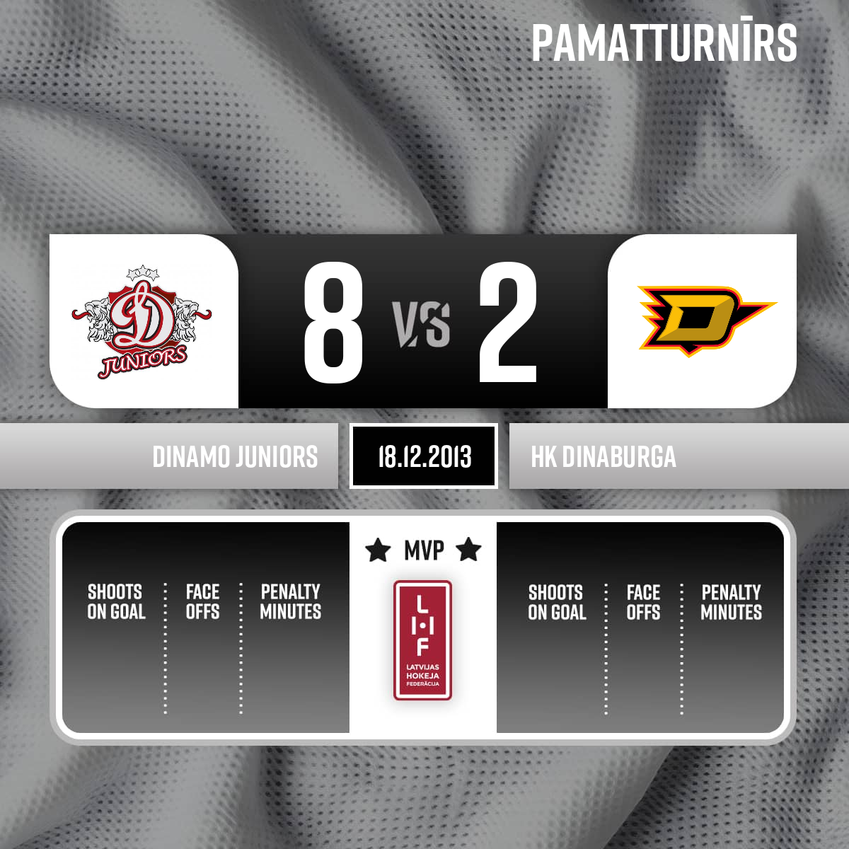 Goal#22 Artūrs LOGUNOVSAssists: #11 Vladislavs KONIŠEVS, #52 Arvis PURVIŅŠ - 00:00P1Galvenais tiesnesis - Jevgenijs Griškevičs, līnijtiesneši - Jānis Eglītis, Artūrs Gabaliņš