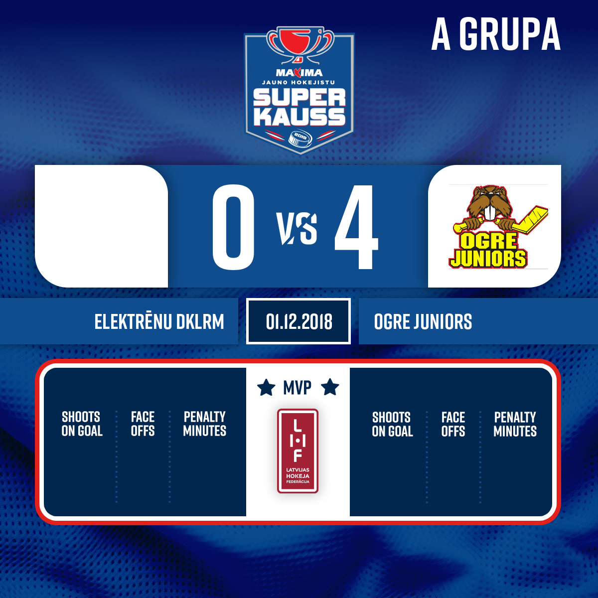 Goal#43 Niks IVAŠKOAssist: #9 Kristers KORBĀNS - 30:00 Start of the 3rd period