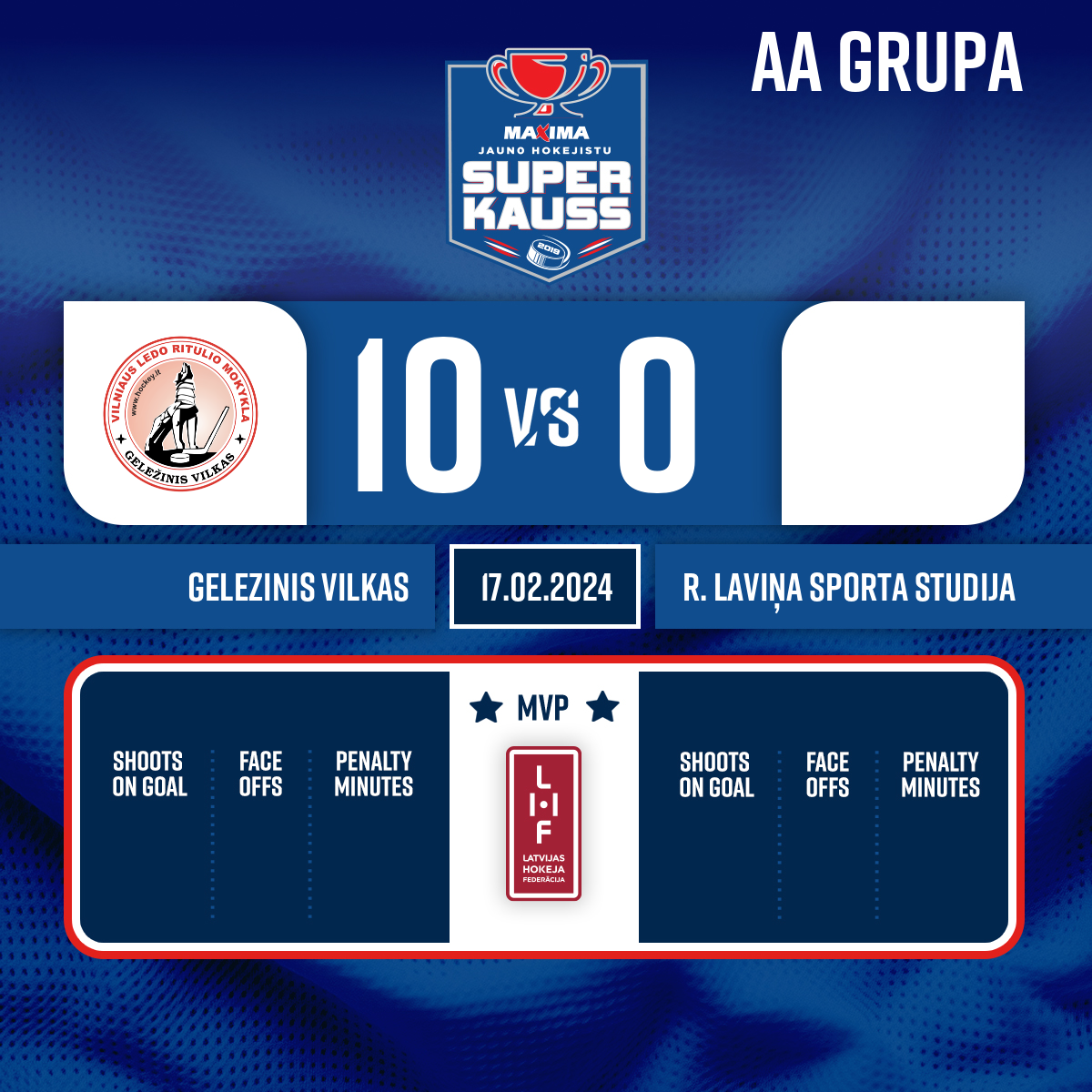 Powerplay goal#25 Nojus POŠKUSAssists: #21 Aleksas DZIUBA, #16 Kajus STANKEVIČIUS - 48:33P3Penalty - 2 minutesHooking, #80 Ernests VENŠAU