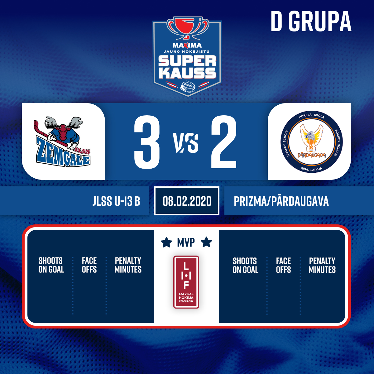 Goal#8 Jegors PARFJONOVSAssists: #3 Valters BREDOVSKIS, #33 Niks MEINARTS - 15:00 Start of the 2nd period