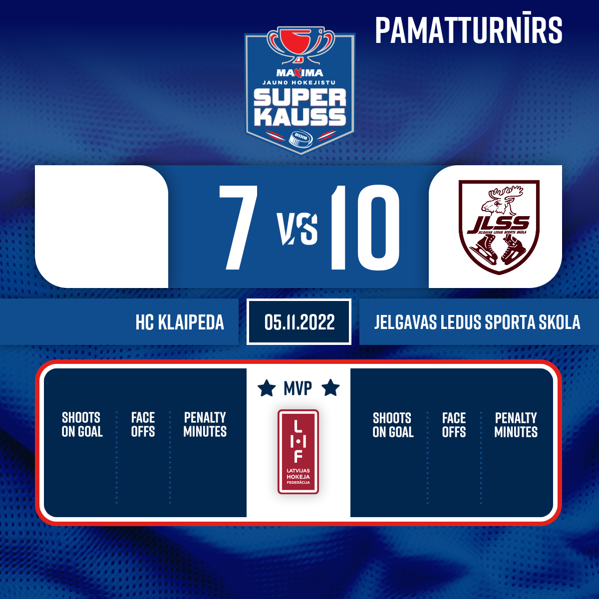 Goalkeeper out#30 Gustavs ŠLEGELMILHS - 45:00P3Goalkeeper out#1 Jurij KESELMAN