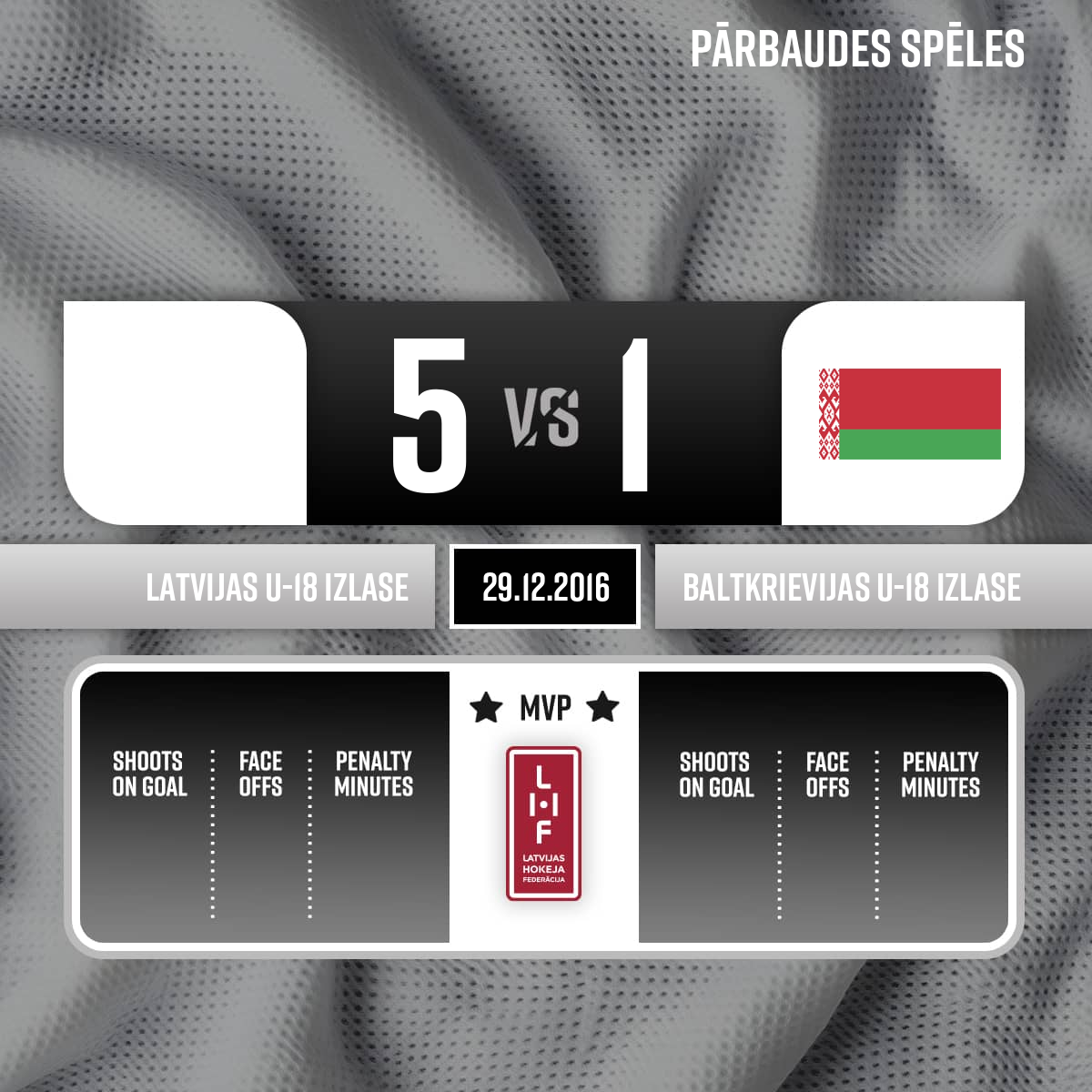 Goal#18 Artjoms LAPIKSAssists: #8 Andrejs KOSTJUKS, #15 Jānis ZEMĪTIS - 40:46P3Penalty - 2 minutesHooking, #10 Emīls ĢĒĢERIS