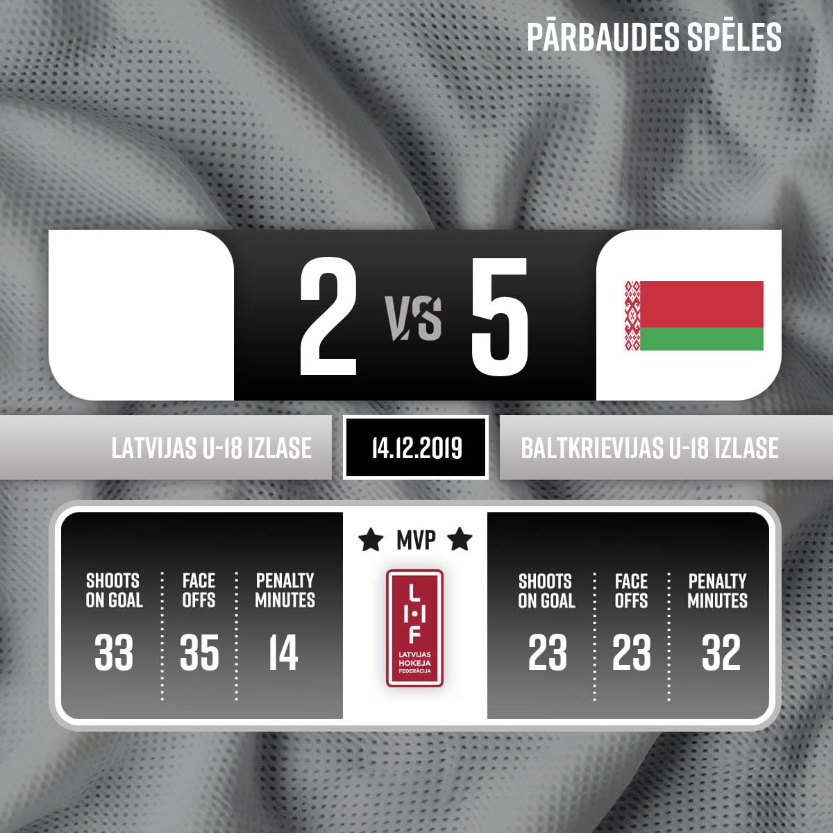 - 60:00P3Labākie spēlētāji/ Best Player of game Latvija U18 – Nr 5 GORŠĀNOVS Daniels Baltkrievija U-18 – Nr 12 PALCHIK Alexander