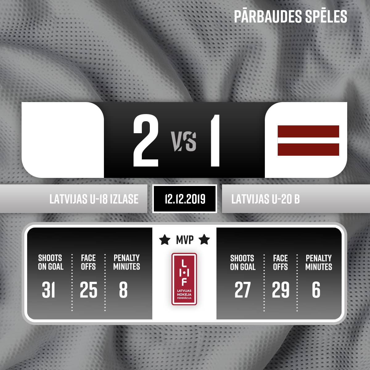 - 60:00P3Labākie spēlētāji/ Best Player of game Latvija U18 – Nr 1 GLŪZDA Mārcis Latvija U20 B –Nr 1 LIEPIŅŠ Reinis