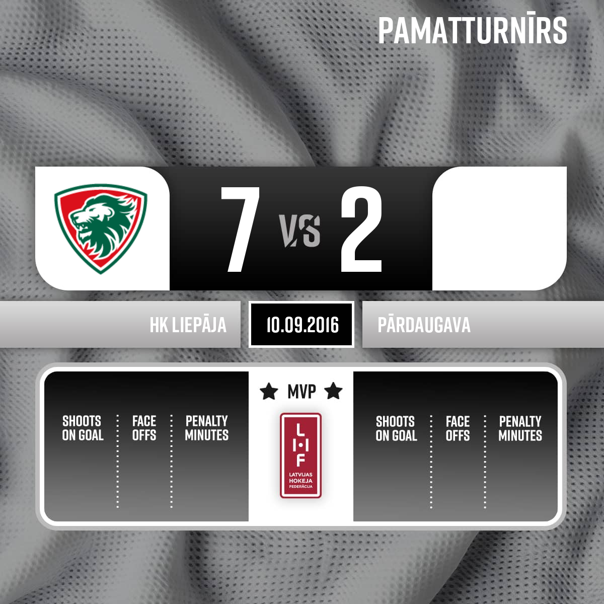 Goal#50 Egils KALNSAssists: #15 Māris DIĻEVKA, #18 Iļja ŽUČKOVS - 00:00P1Spēles tiesneši: galvenais tiesnesis - Maksims Bogdanovs, līnijtiesneši - Viesturs Lēvalds un Jānis Beķeris