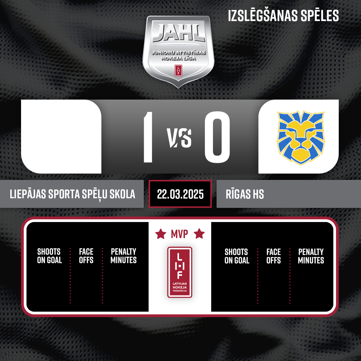 Penalty - 5 minutesFighting, #37 Ričards MISIŅŠ - 59:33P3Penalty - 2 minutesFighting, #32 Reinholds CIRCENIS