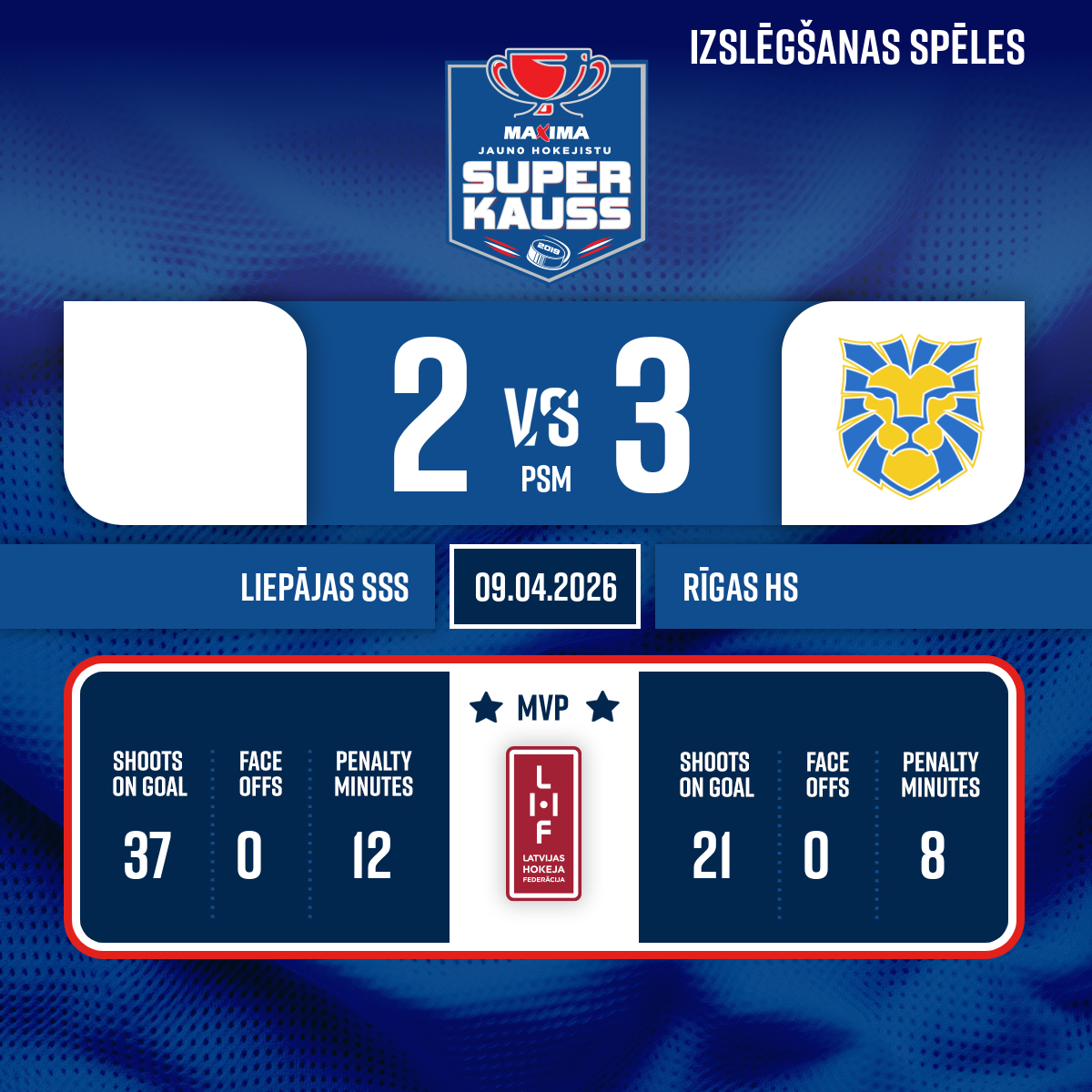 Goal#21 Valters GLŪZDAAssists: #13 Miks Matīss SŪNIŅŠ, #23 Adrians BĒRZIŅŠ - 57:49P3