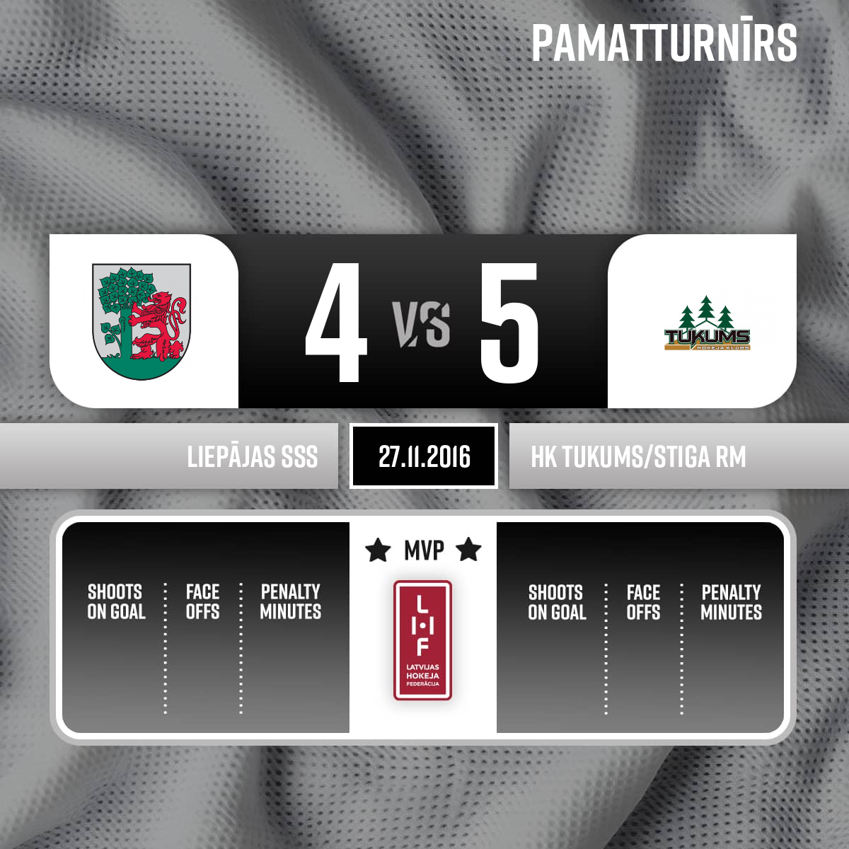 Goal#28 Aigars BĒRZIŅŠAssists: #15 Artūrs BATRAKS, #4 Dāvis SPRUKTS - 00:00P1Spēli tiesā - galvenais tiesnesis R.Jučers, līnijtiesneši A.Propošins un N.Siļčonoks.