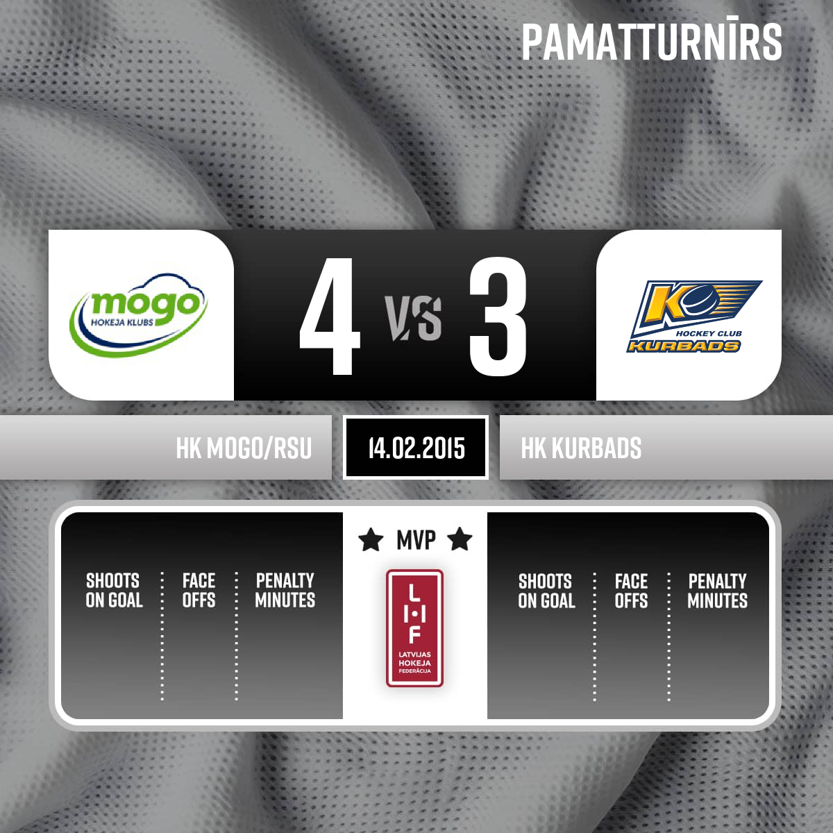 Goal#44 Aleksejs ŠIROKOVSAssists: #17 Aleksandrs MACIJEVSKIS, #94 Gatis GRICINSKIS - 40:00 Start of the 3rd period