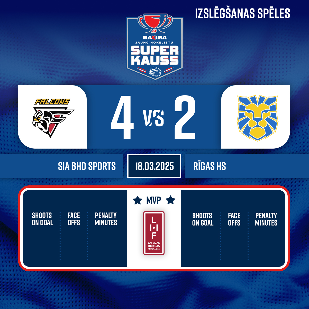 Goal#25 Rendolfs LŪSISAssists: #18 Raiens INNUS, #9 Mārcis RĒDLIHS