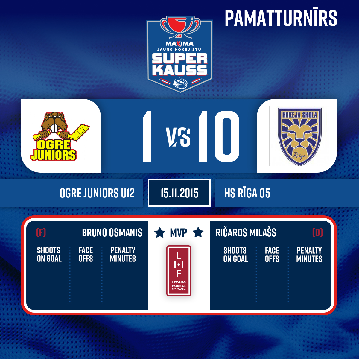 Labākie spēlētāji; Ogre juniors #71 Bruno Osmanis HS Rīga 2005 #27 Ričards Milašs