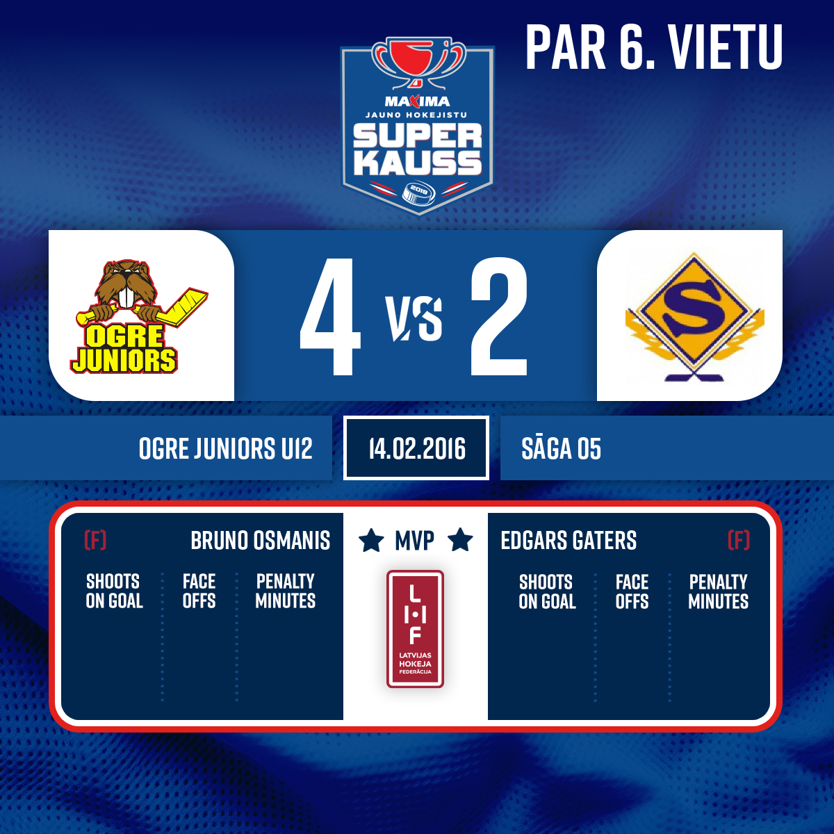Spēles labākie spēlētāji; Ogre juniors # 71 Bruno Osmanis; Sāga 05 #15 Edgars Gaters.