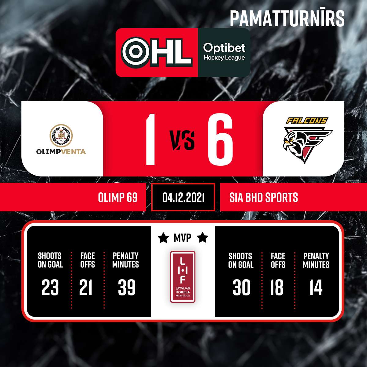 Penalty - 2 minutesHooking, #9 Gatis GRICINSKIS - 00:00P1Spēles tiesneši: galvenie tiesneši - Artūrs Artamonovs un Andrejs Kudrjašovs; līnijtiesneši - Emīls Druseiks un Raitis Briņecs Spēles sākums Inbox.lv ledus hallē pulksten 16:30