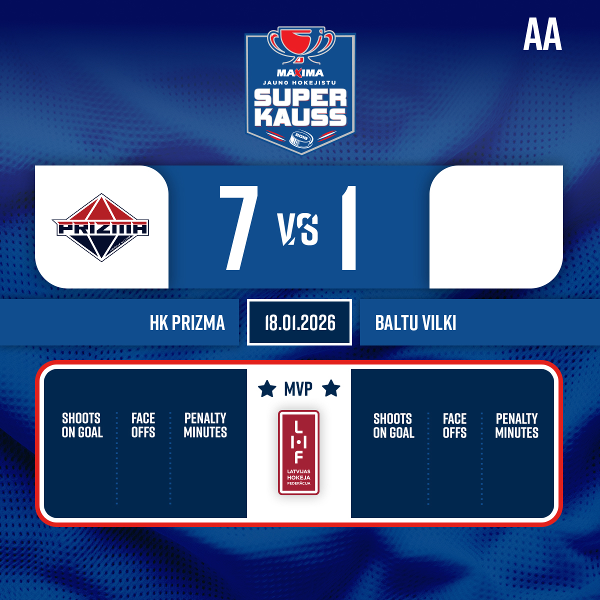 Penalty - 2 minutesCross-checking, #16 Patriks Miks PŪPOLS - 30:00 Start of the 3rd period