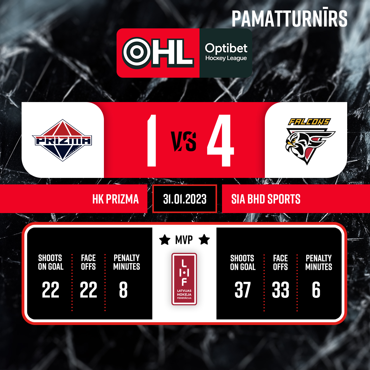 Penalty - 2 minutesToo many players, Team penaltySodu izcieš Nr 11ĻAŠČENKO Ņikita - 00:00P1Spēles tiesneši- Galvenie tiesneši - Sintija Čamane, Raivis Jučers, līnijtiesneši- Viesturs Lēvalds, Vladislavs Odiņš Spēles inspektors - Arnis Bērziņš