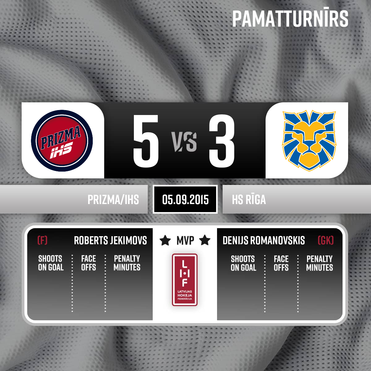 - 60:00P3Spēles labākie spēlētāji: HK Prizma #69 - Roberts Jekimovs, HS Rīga #1 - Denijs Romanovskis
