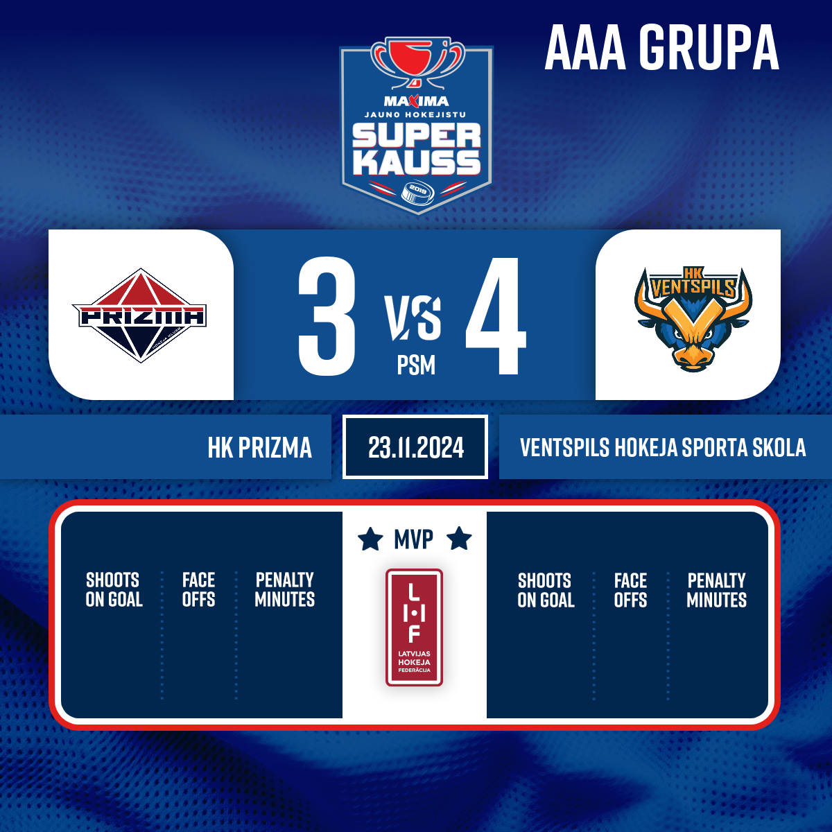 Goal#12 Gustavs VALERSAssists: #21 Adrians JEFREMENKO, #9 Leonels BLUMBERGS - 32:20P3