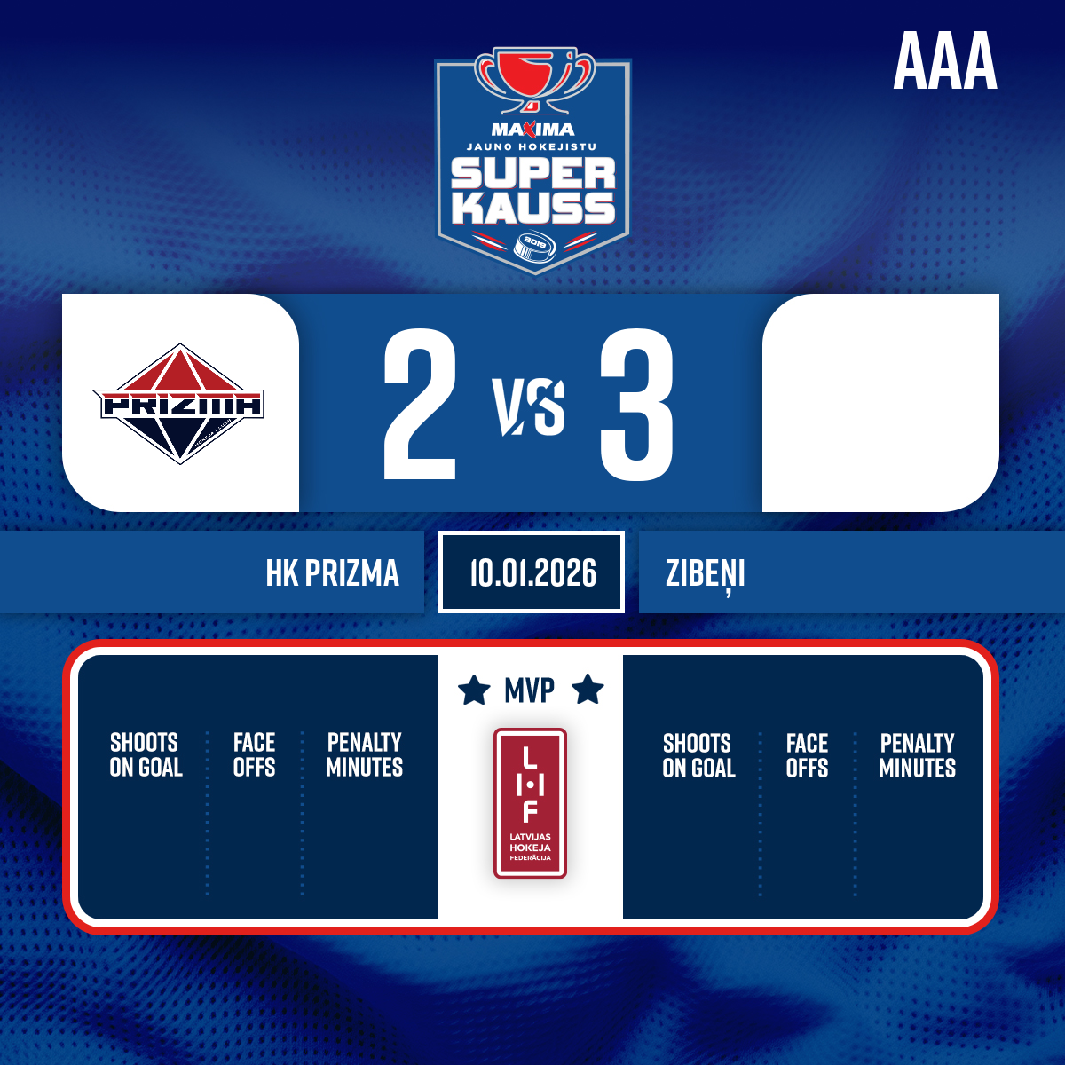 Goal#13 Marats VOROBJOVSAssists: #22 Krištijonas SUTKUS, #10 Renārs ALKSNIS - 15:00 Start of the 2nd period
