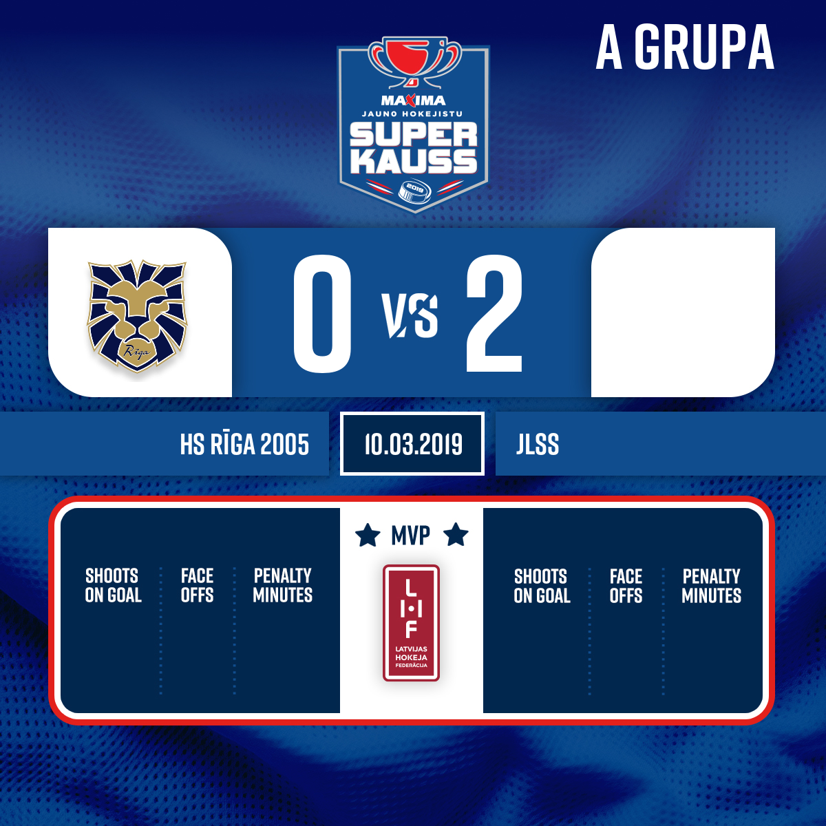 Goal#10 Reinards Dāvis PĒTERSONSAssists: #34 Kristers VĪTOLIŅŠ, #3 Mārtiņš Krišs KRŪKLĪTIS - 00:00P1