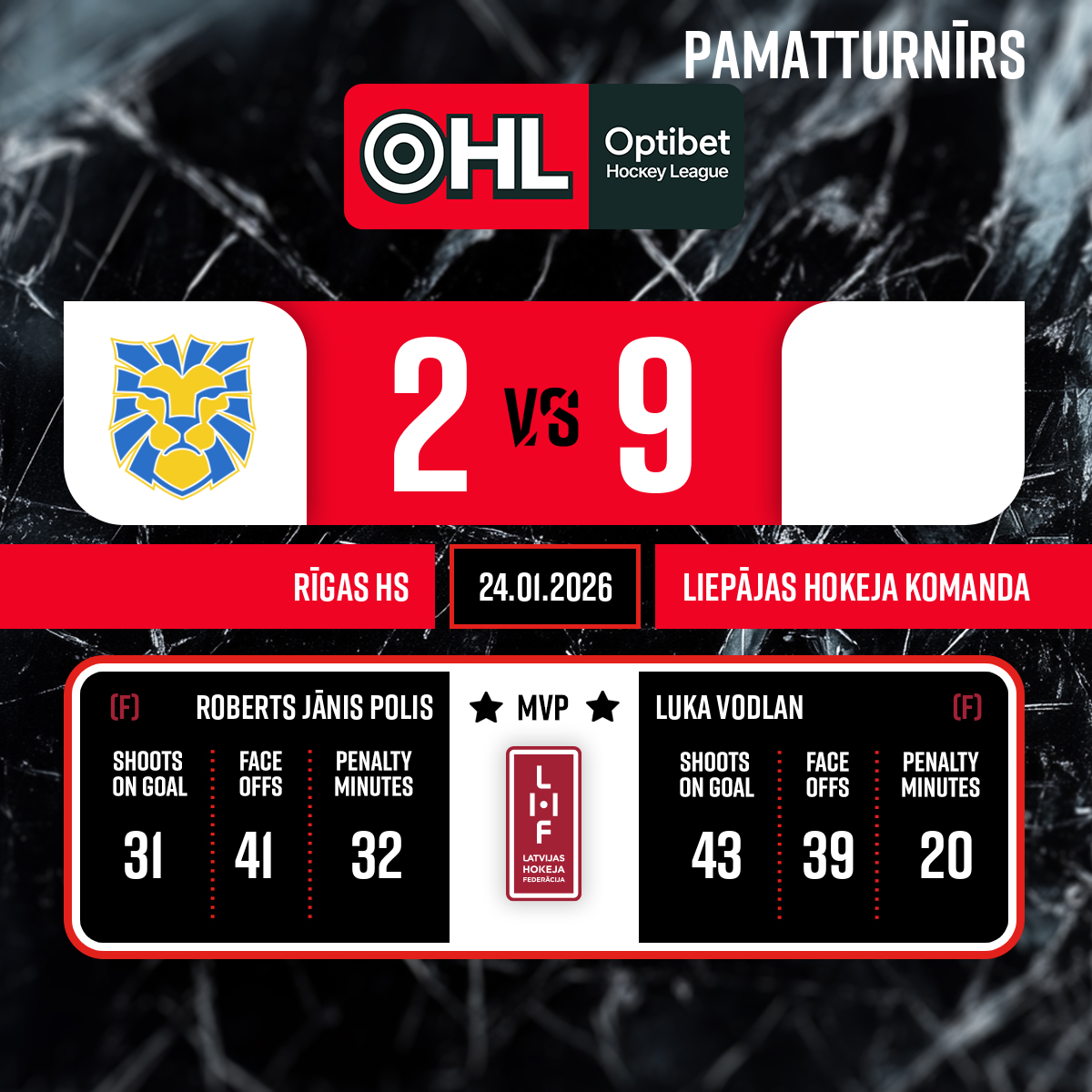 - Penalty bench officials:Markuss KALNIŅŠ, Daniils POTRIVAILO