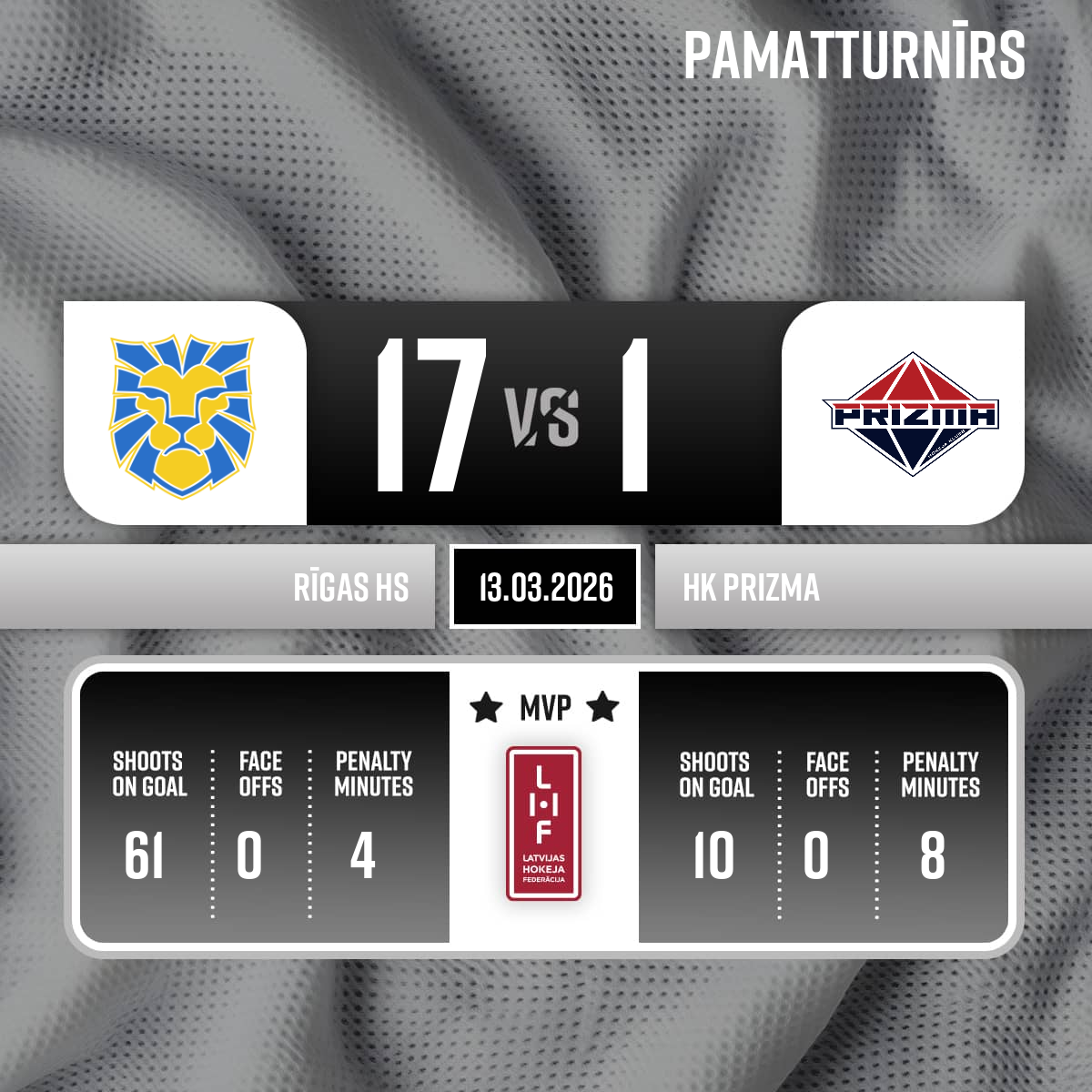 Goal#13 Dāvids DAŅILOVSAssists: #47 Lenards Jānis SPRIESLIS, #49 Valters BERNHARDS