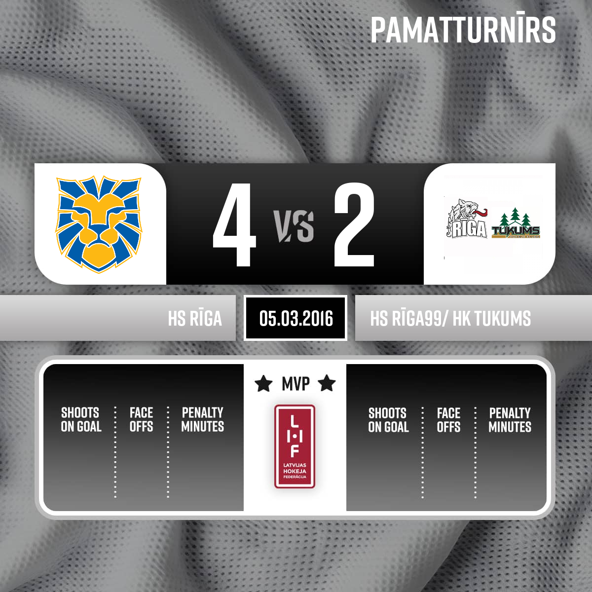 - 60:00P3Labākie spēlētāji: HS Rīga #32 - Edgars Ozoliņš HS Rīga99/ HK Tukums #2 - Olafs Bērziņš