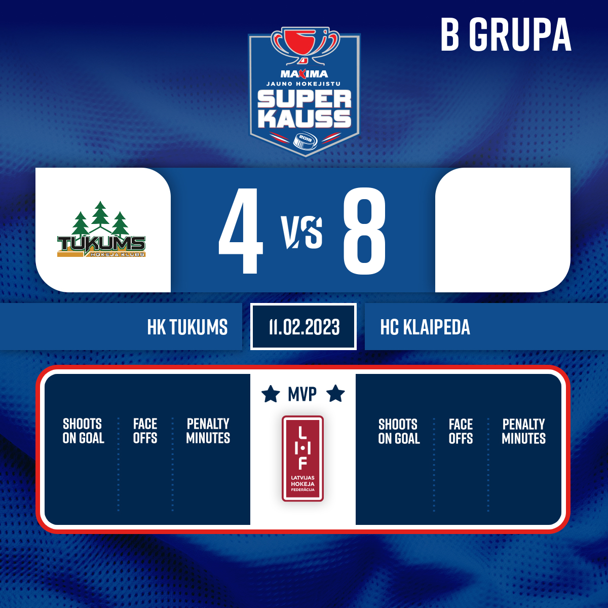 Goalkeeper in#1 Rūdolfs KRUMHOLDS - 30:00P2