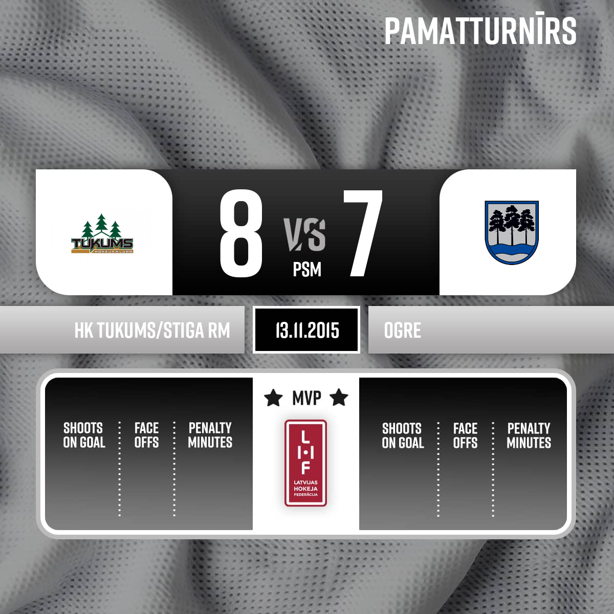Goal#81 Kristaps JAUNOZOLIŅŠAssist: #90 Kristaps LEGZDIŅŠ - 00:00P1Spēli tiesā: Galvenie tiesneši - Agris Saņikovs, Ēriks Kanbergs