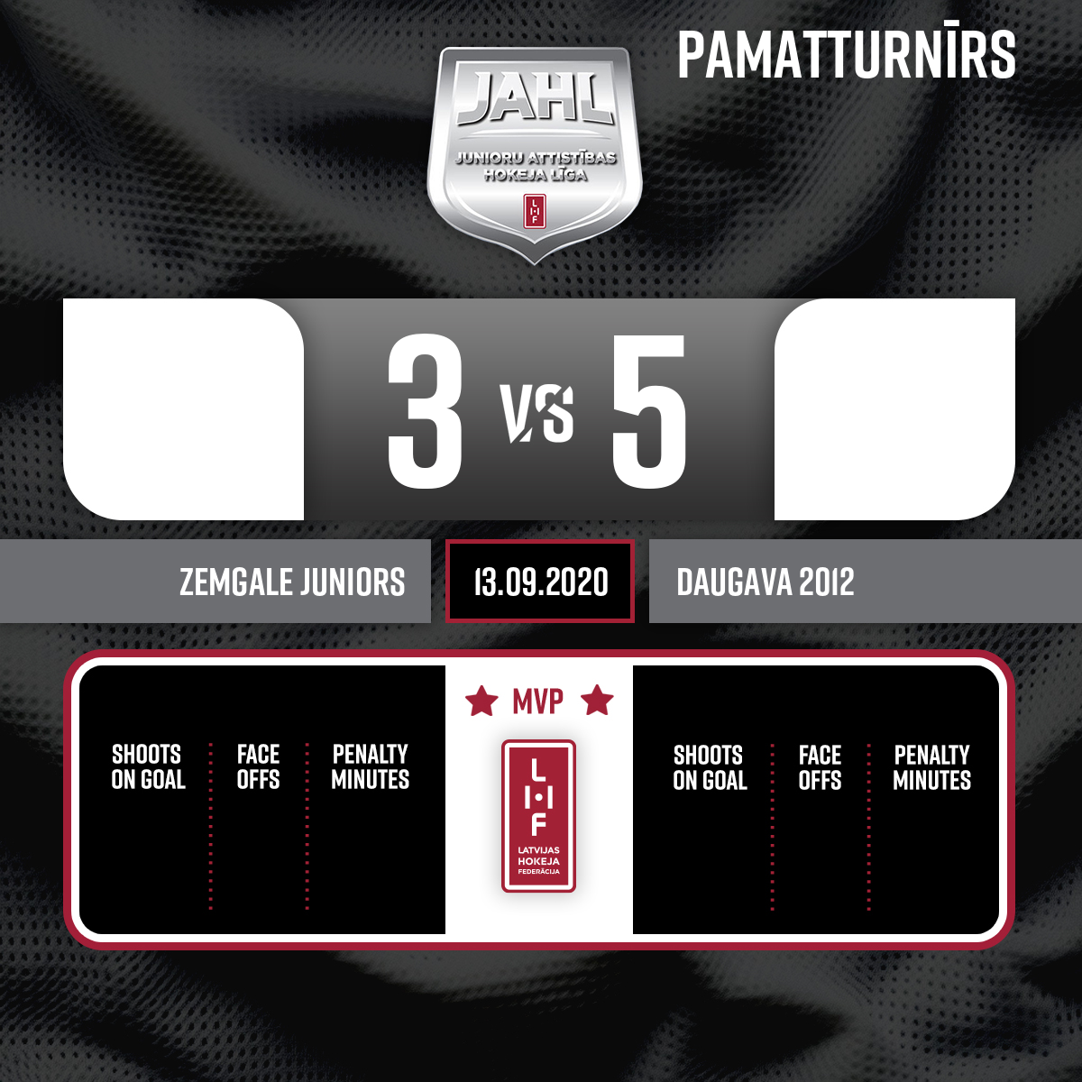 Powerplay goal#13 Rihards MILLERSAssists: #92 Matīss BĪRIŅŠ, #98 Augusts Ričards VEIDENBAUMS - 52:57P3Penalty - 2 minutesHolding an opponent, #3 Mārtiņš Krišs KRŪKLĪTIS