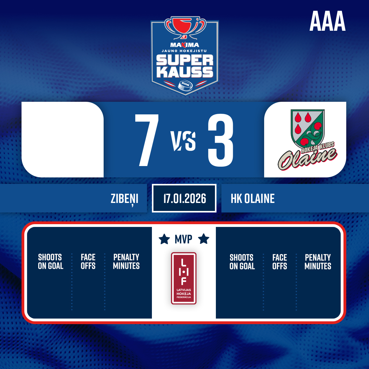Goal#31 Martins KINDZULISAssists: #20 Henrijs LISOVSKIS, #22 Krištijonas SUTKUS - 30:00 Start of the 3rd period