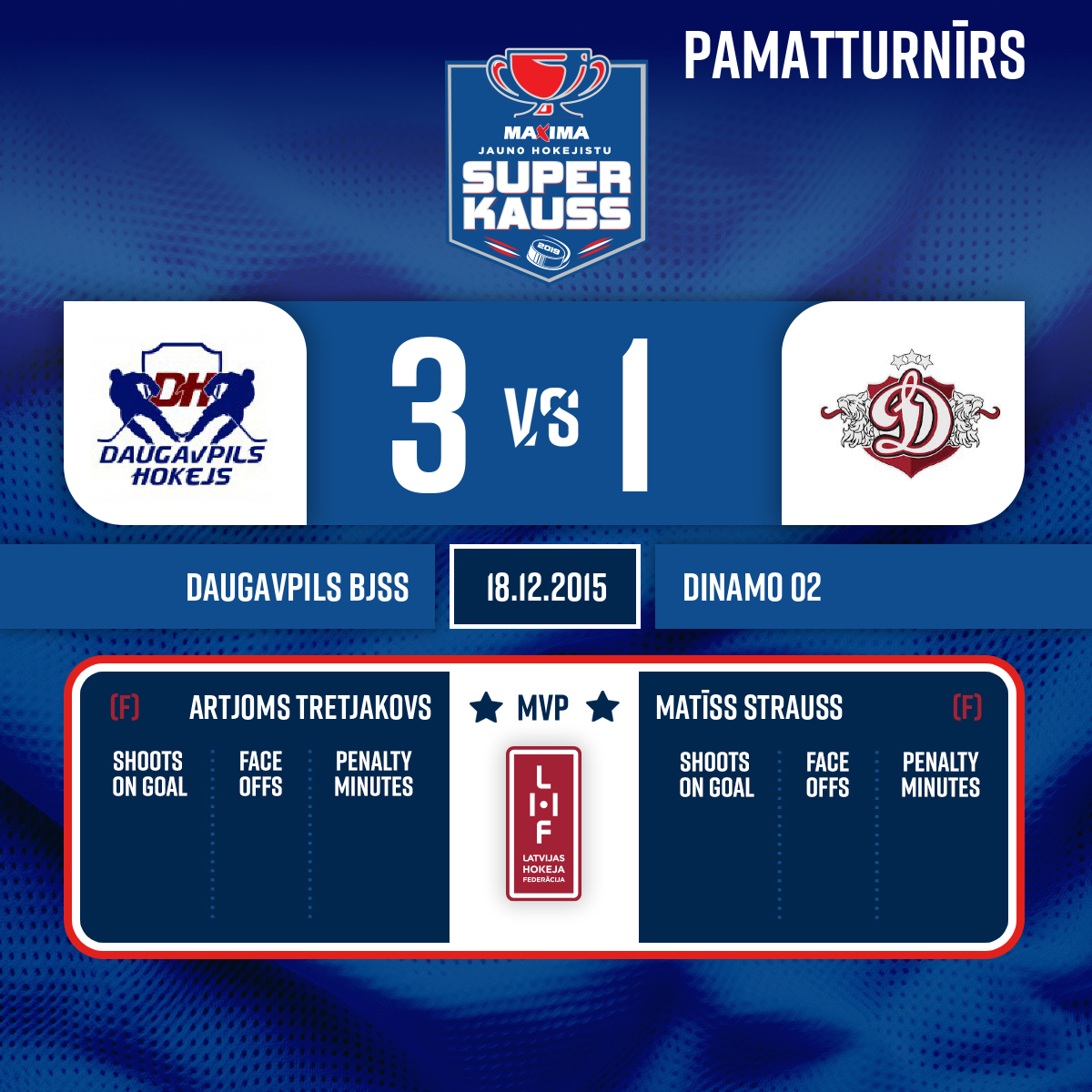 Spēles labākie spēlētāji: Daugavpils BJSS - # 17 Artjoms Tretjakovs, Dinamo 02 - # 56 Aleksis Plensners.