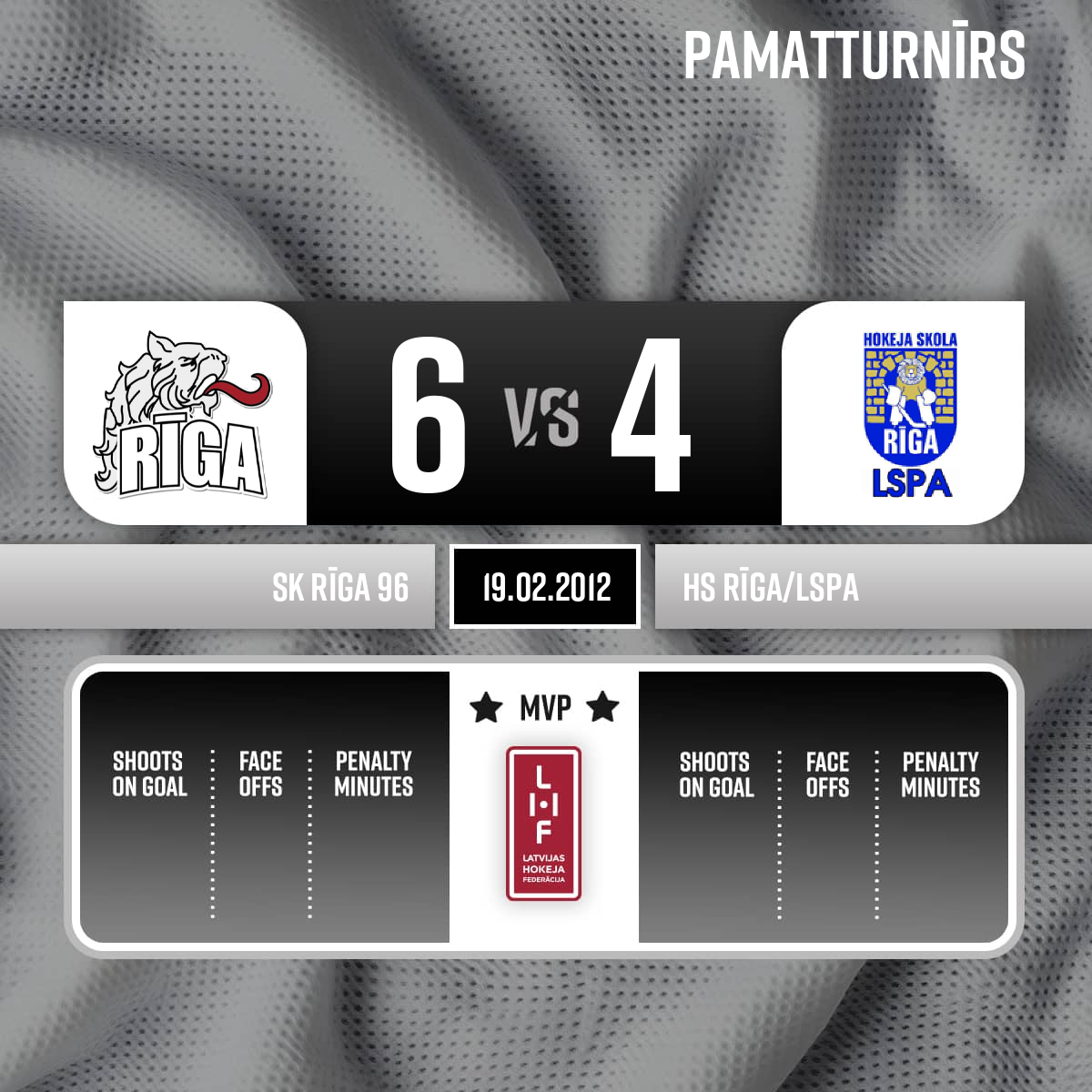 Goal#92 Vladislavs KONIŠEVSAssist: #23 Kaspars POREJS - 00:00P1Spēles tiesneši. Galvenais tiesnesis Juris Balodis, līnijtiesneši Vitālijs Vorona un Laicāns Juris
