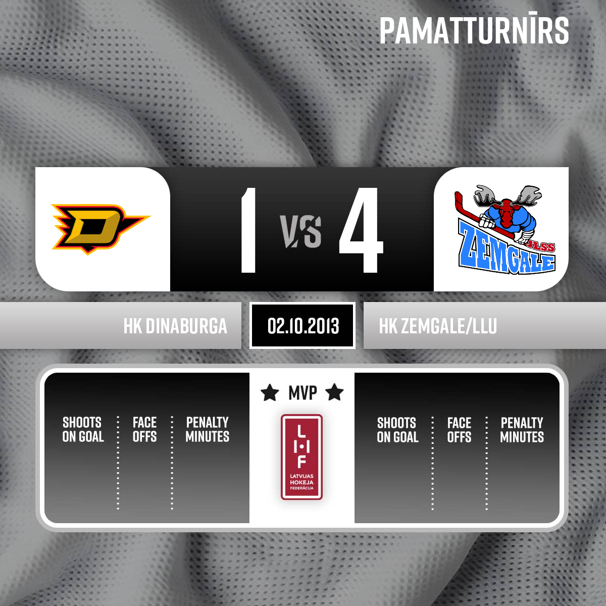 Goalkeeper in#1 Ruslans KURELASSSpēles galvenajs tiesnesis: Sergejs Dančenoks< līnijtiesneši: Deniss Kudrjašovs un Pāvels Pumpiņš. - 00:00P1