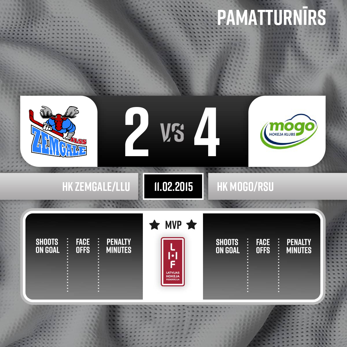 Goal#71 Māris MIEZISAssists: #17 Andis ĀBOLIŅŠ, #11 Didzis JANSONS - 00:00P1Galvenais tiesnesis: Gints Zviedrītis Līnījtiesneši: Krišs Kupčus un Edvards Briedis