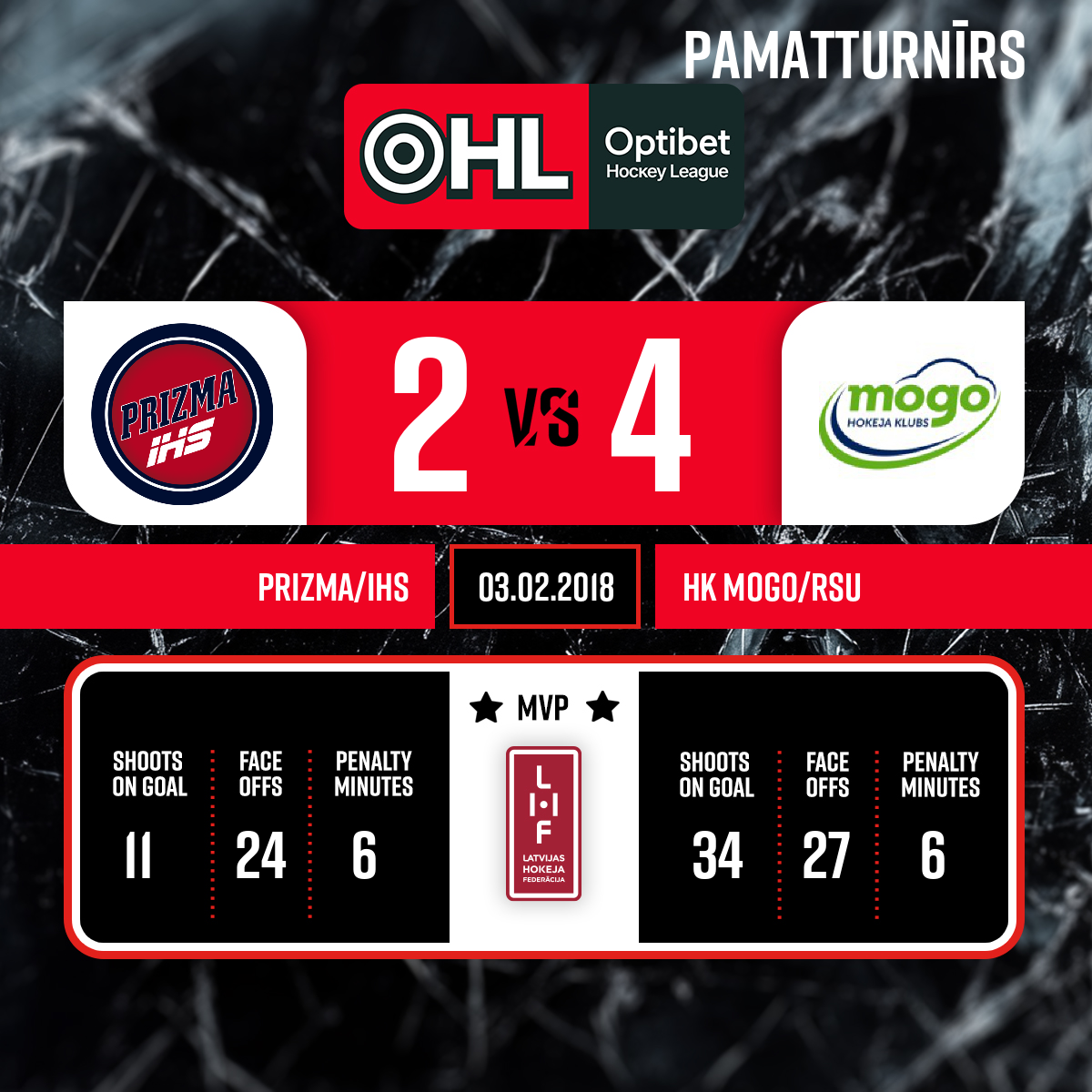 Spēles labākie spēlētāji: HK Prizma - #53 Minaev Anton HK Mogo - #22 Siksnis Andris