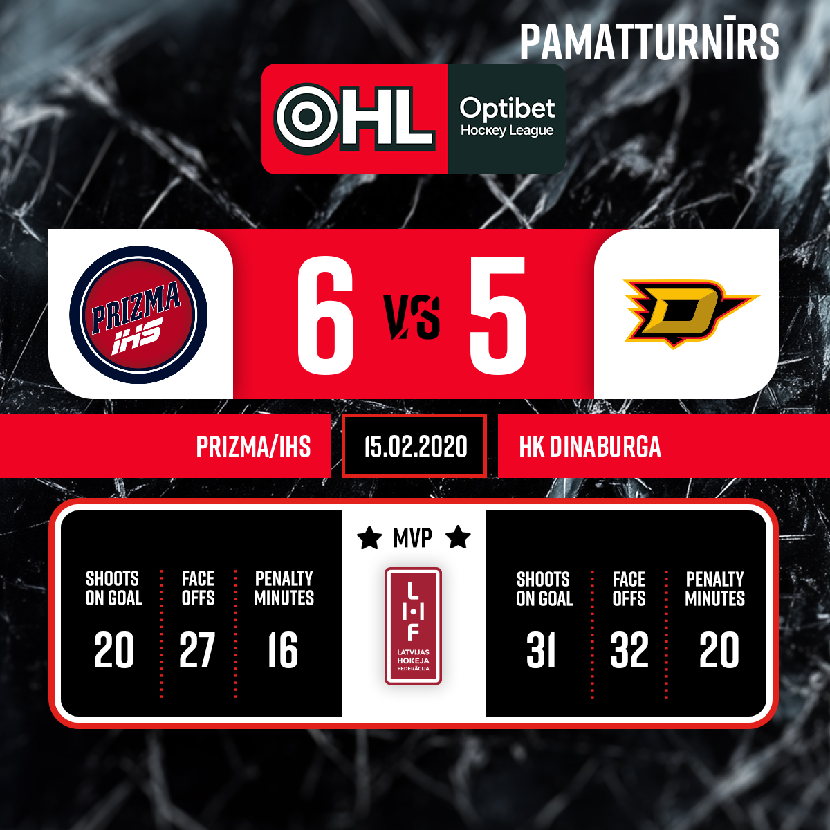 Spēles labākie spēlētāji: PRIZMA/IHS - #13 Andrejs Smirnovs HK Dinaburga - #96 Imants Ļeščovs
