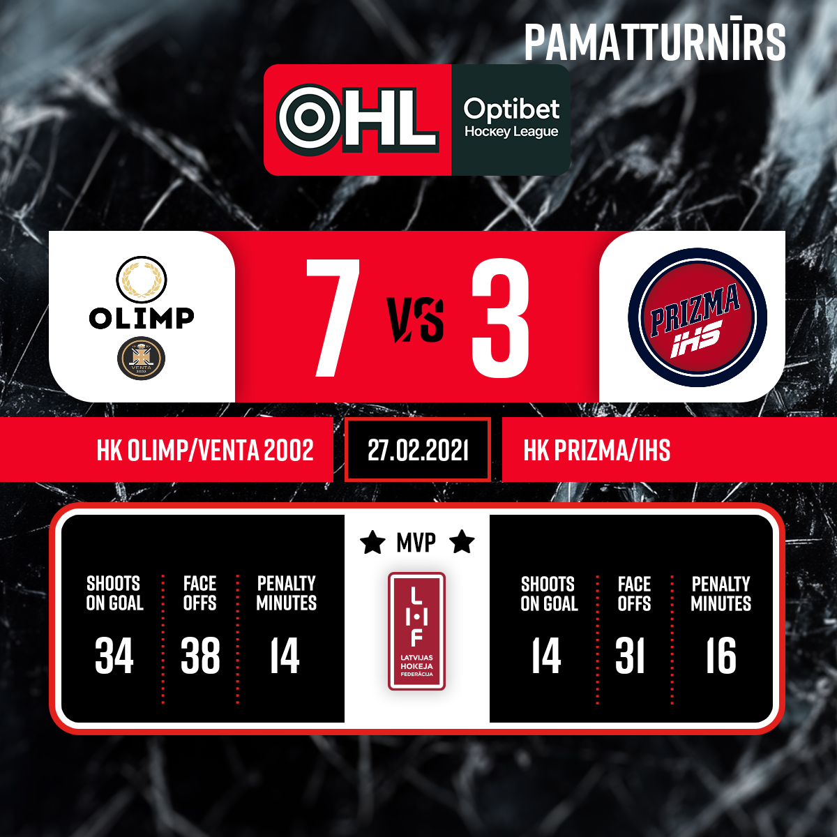 Labākie spēlētāji: HK Prizma/IHS komandā – Dāvis Straupe #62; HK Olimp/Venta 2002 komandā – Aleksandrs Jerofejevs #23