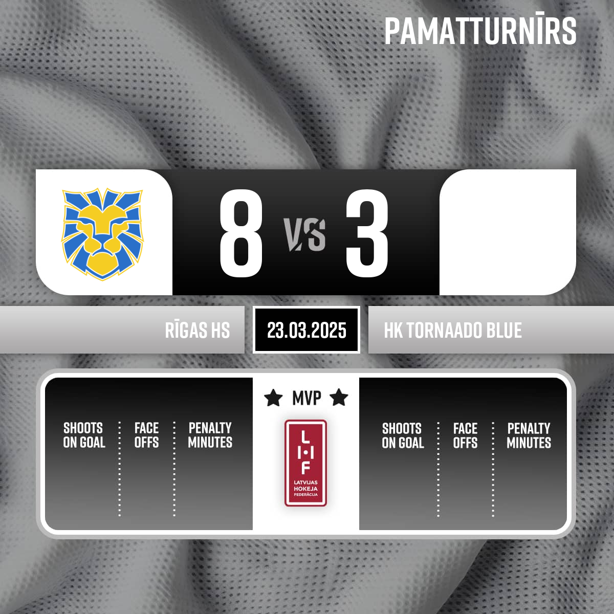 Goal#34 Alberts PURIŅŠAssist: #64 Mārtiņš GAIDULIS - 35:49P2TimeoutHK Tornaado Blue