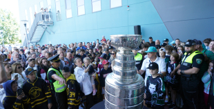 Apmeklētāji varēja ne vien aplūkot, bet arī nofotografēties ar čempionu kausu, kura vēsture aizsākās pirms teju 130 gadiem. Stenlija kauss ir unikāls ar to, ka uz tā kopumā ir tikuši iegravēti vairāk nekā 3 400 hokejistu, treneru un komandu pārstāvju vārdi. Trofeja ir 89,5 cm augsta un sver 15,5 kg.