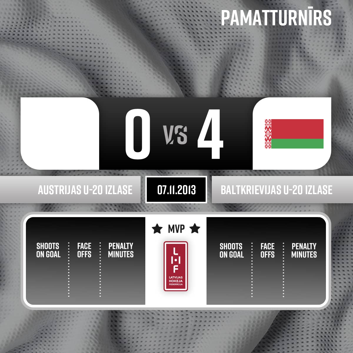 Vārti vairākumā#22 Yevgeni KUNTSEVICHPiespēle: #13 Roman DOSTANKO+1 vairākumā - 33:152.PNoraidījums - 2 minūtesPretinieka turēšana, #12 Alexander CIJAN