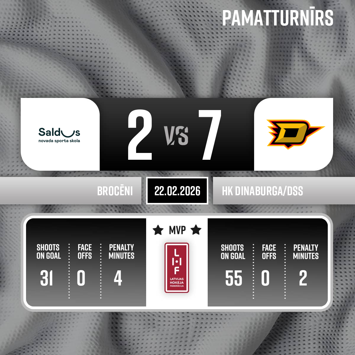Vārti#27 Sergejs PEČURAPiespēles: #17 Artjoms TRETJAKOVS, #79 Edgars MAMAJS - 51:553.P