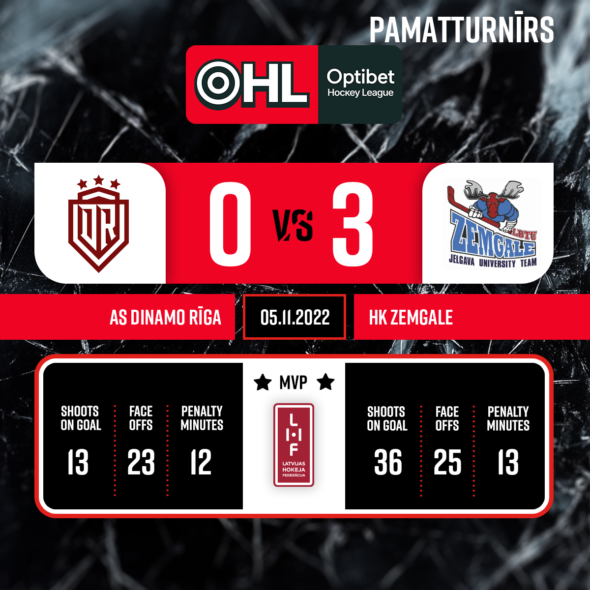 - 60:003.PLabākie spēlētāji: HL Zemgale/LLU komandā – Daniels Goršanovs #19 Dinamo Rīga komandā – Koba Jass #51