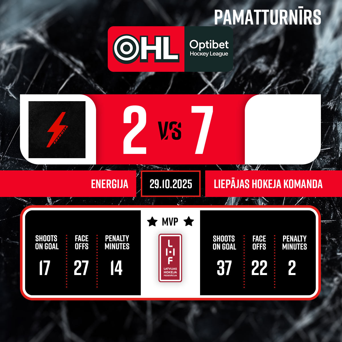Piespēles: #32 Reinholds CIRCENIS#72 Kevins STRĀDNIEKS0:103:43