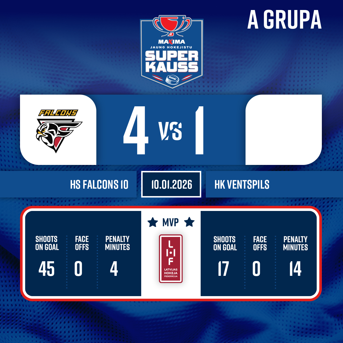 Vārti#19 Rodrigo VĪTOLSPiespēle: #14 Daniels AUNIŅŠ - 55:563.PNoraidījums - 2 minūtesKlupināšana, #20 Elans LAGZDIŅŠ