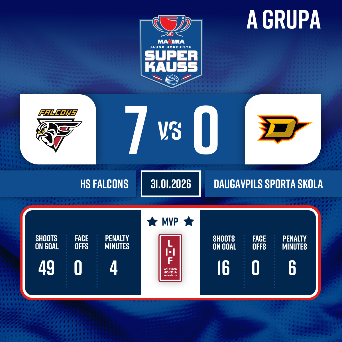 Vārti#45 Artūrs DAUDZEPiespēles: #86 Kirils POPOVS, #14 Roberts KAPIŅŠ
