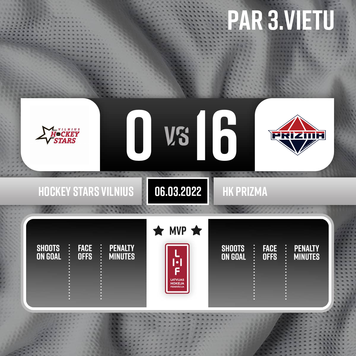 - 45:003.PLabākās spēlētājas: Hockeys Stars Vilnius komandā – Viltaute Jasineviciute #89 SHK Lauvas/Prizma 1 komandā – Milana Veronika Laletina #5