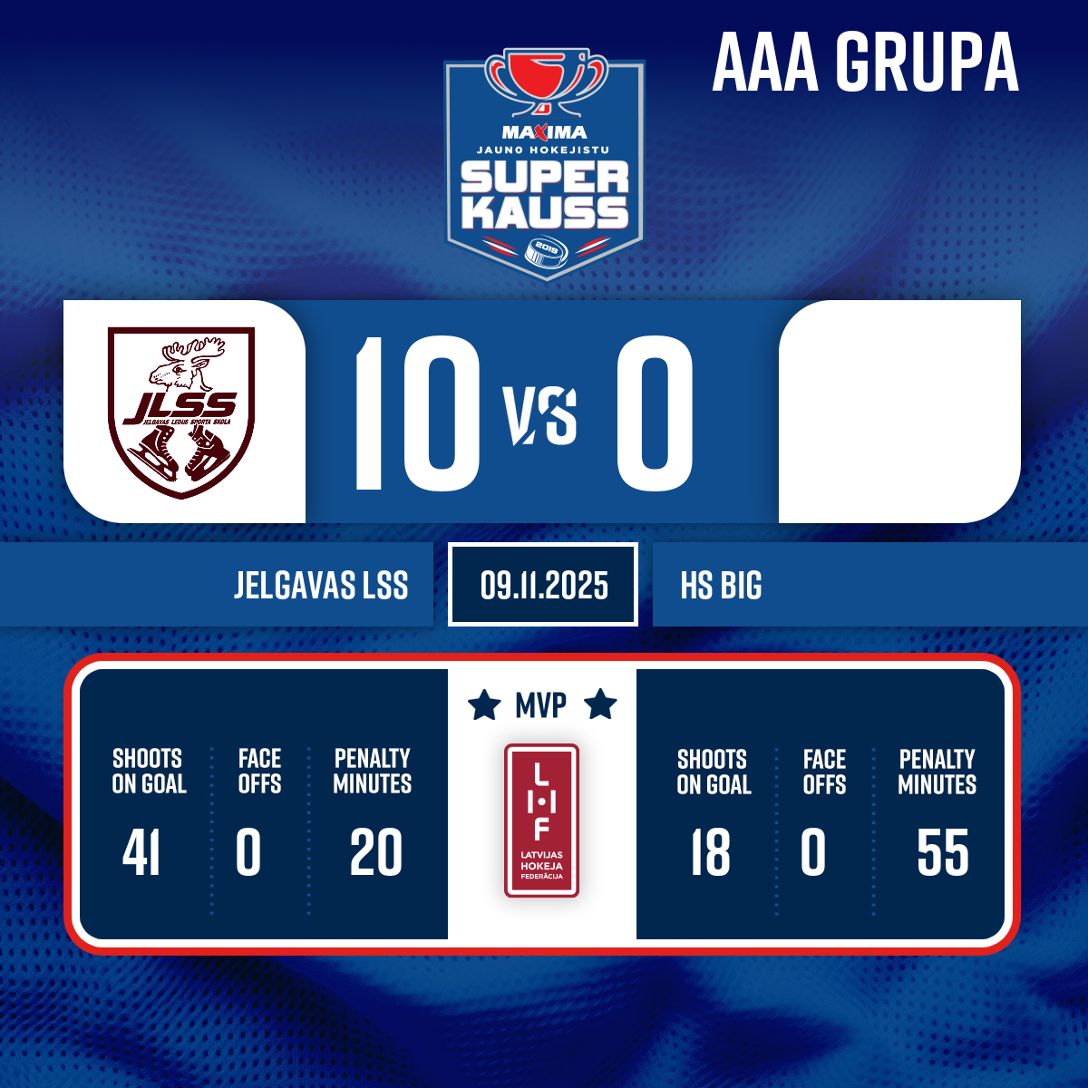 Noraidījums - 2 minūtesGrūdiens ar nūju rokās, #10 Gustavs Aurelijus SERGA - 55:363.P