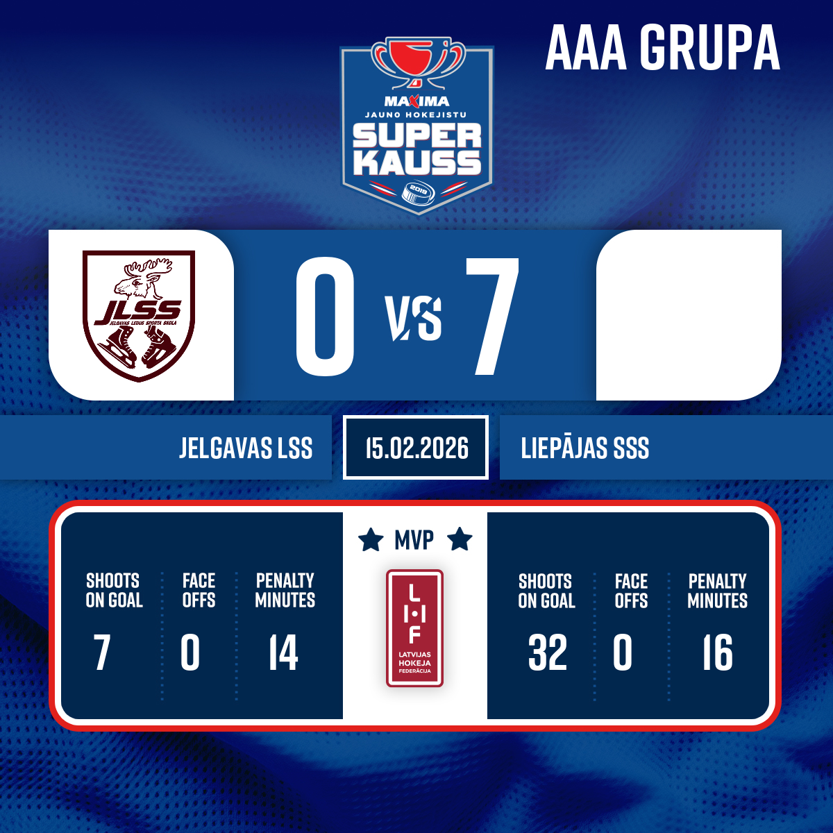 Noraidījums - 2 minūtesSkaitliskā sastāva pārkāpums, Sods komandaiSodu izcieš: #21 Gustavs ĀBELIS - 00:001.P
